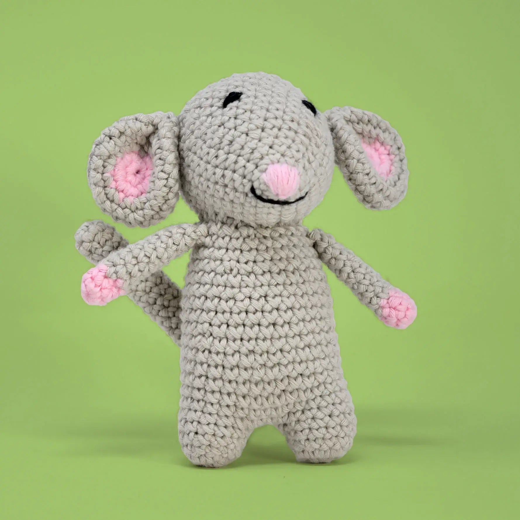 She’s tiny, twinkly-eyed, and always ready to scurry into your heart (and maybe your snack drawer). With this kit, you’ll crochet a squeaky little friend who’s all about nibbles, giggles, and cozy hideaways. 🧀🏡